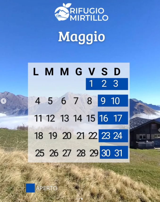 APERTURE Rif. Mirtillo a maggio nei weekend
