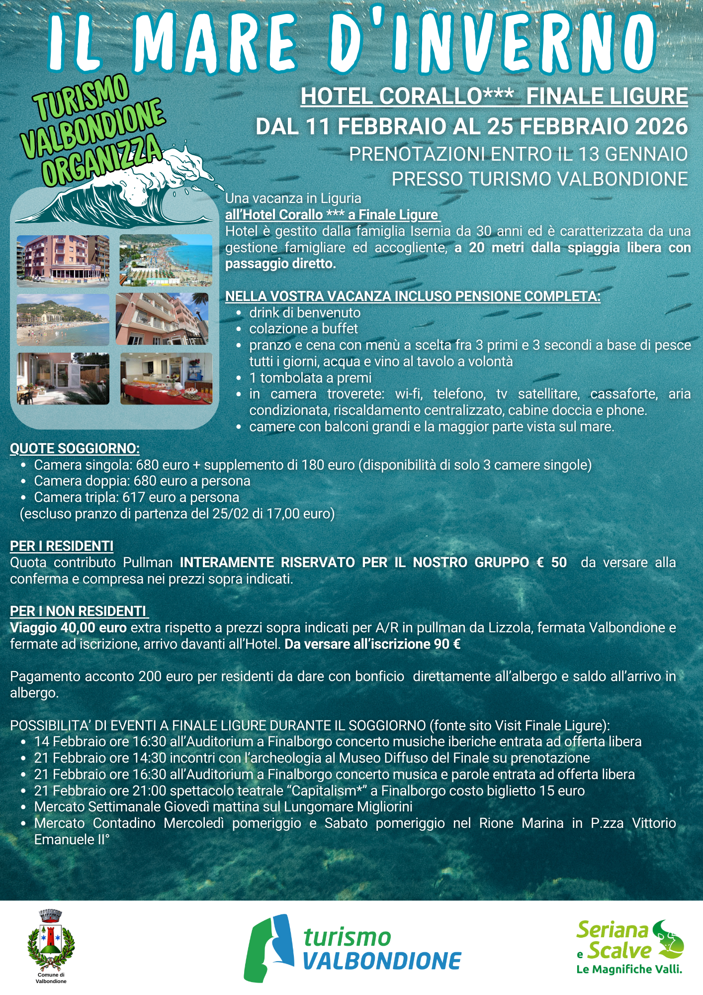 Come da tradizione si organizza a Valbondione il MARE D’INVERNO in Liguria, per quest’anno all’Hotel Corallo di Finale Ligure