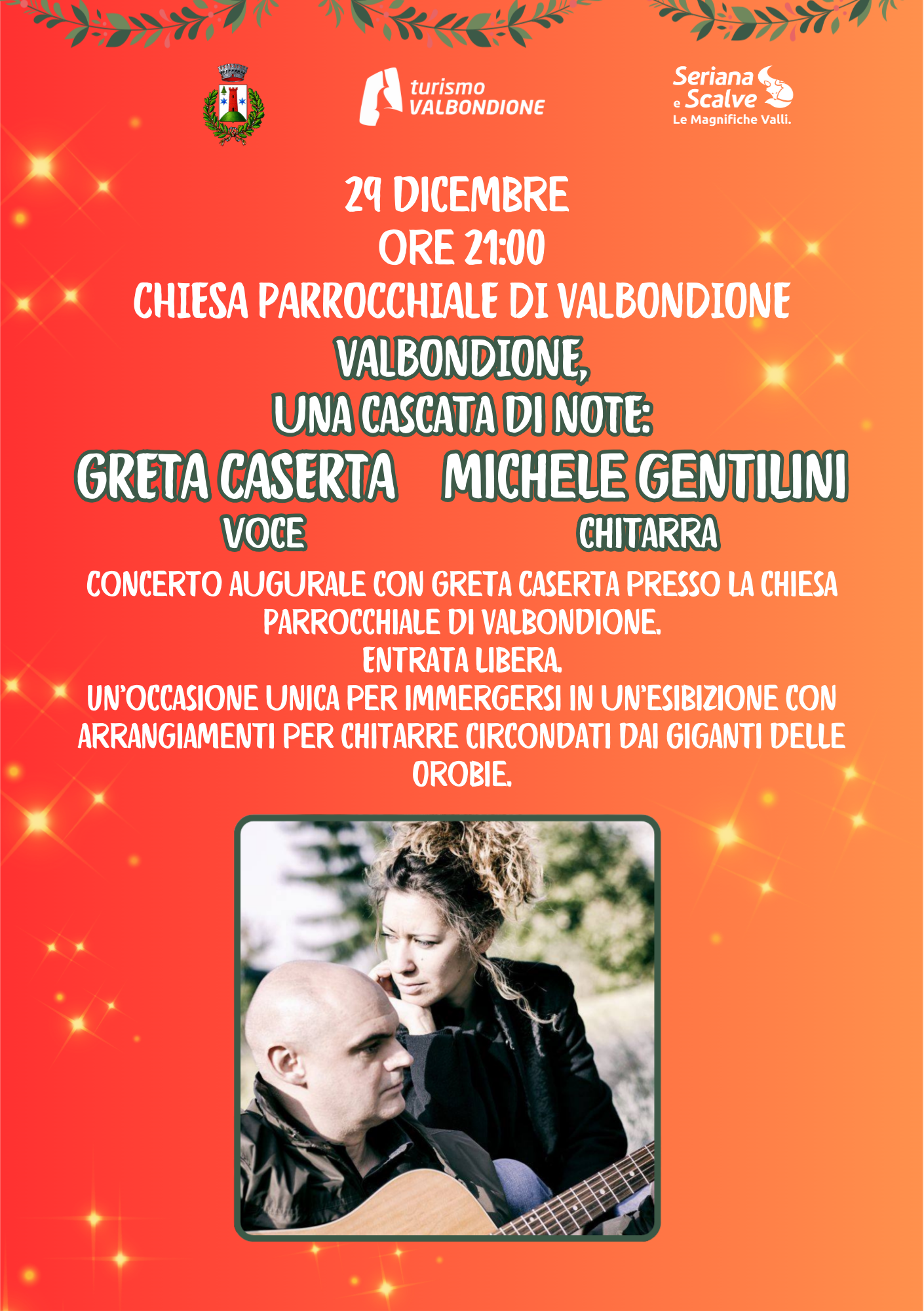 Alle ore 21:00 Concerto augurale con Greta Caserta presso la chiesa Parrocchiale di Valbondione.