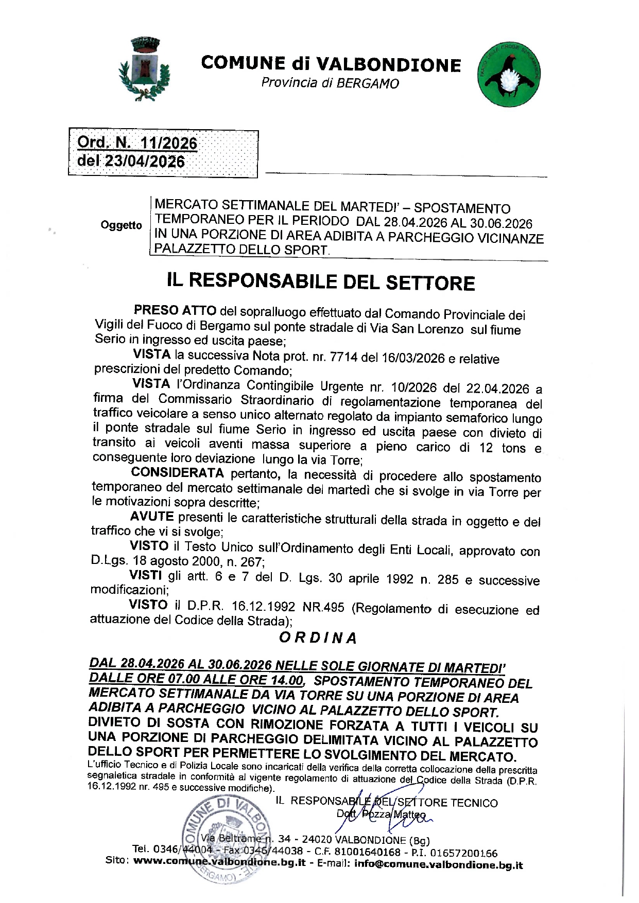 ORDINANZA N.11/2026 del 23/04/2026