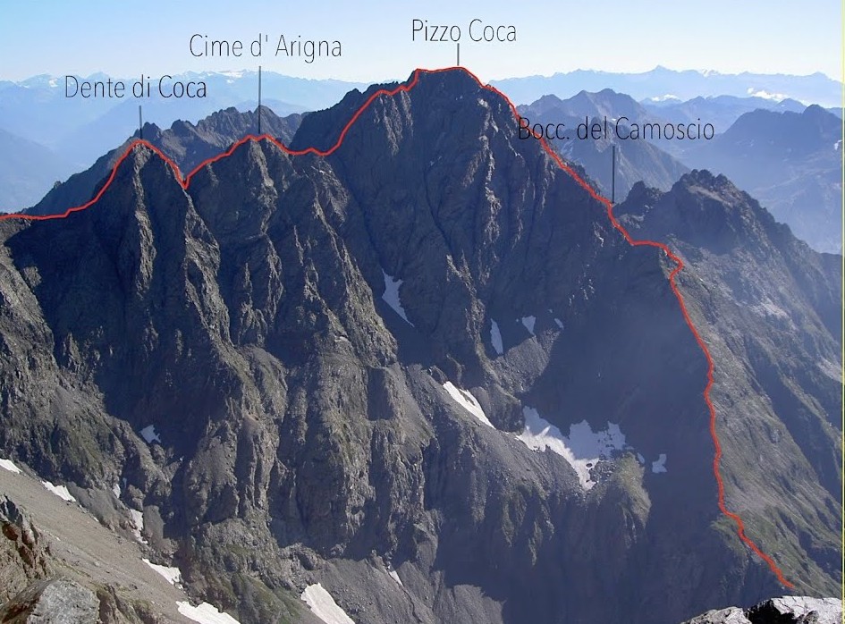 Notevole cima che spicca lungo la cresta che va dal Passo di Coca al Pizzo Coca. Si tratta di una delle più impegnative vette situata nel cuore delle Orobie; la parete nord è quasi verticale, mentre quella dal lato della Val di Coca è più accessibile e presenta diversi itinerari di salita di media difficoltà. Venne raggiunta per la prima volta nel 1908, più precisamente il 26 luglio, da Castelnuovo e Scotti.